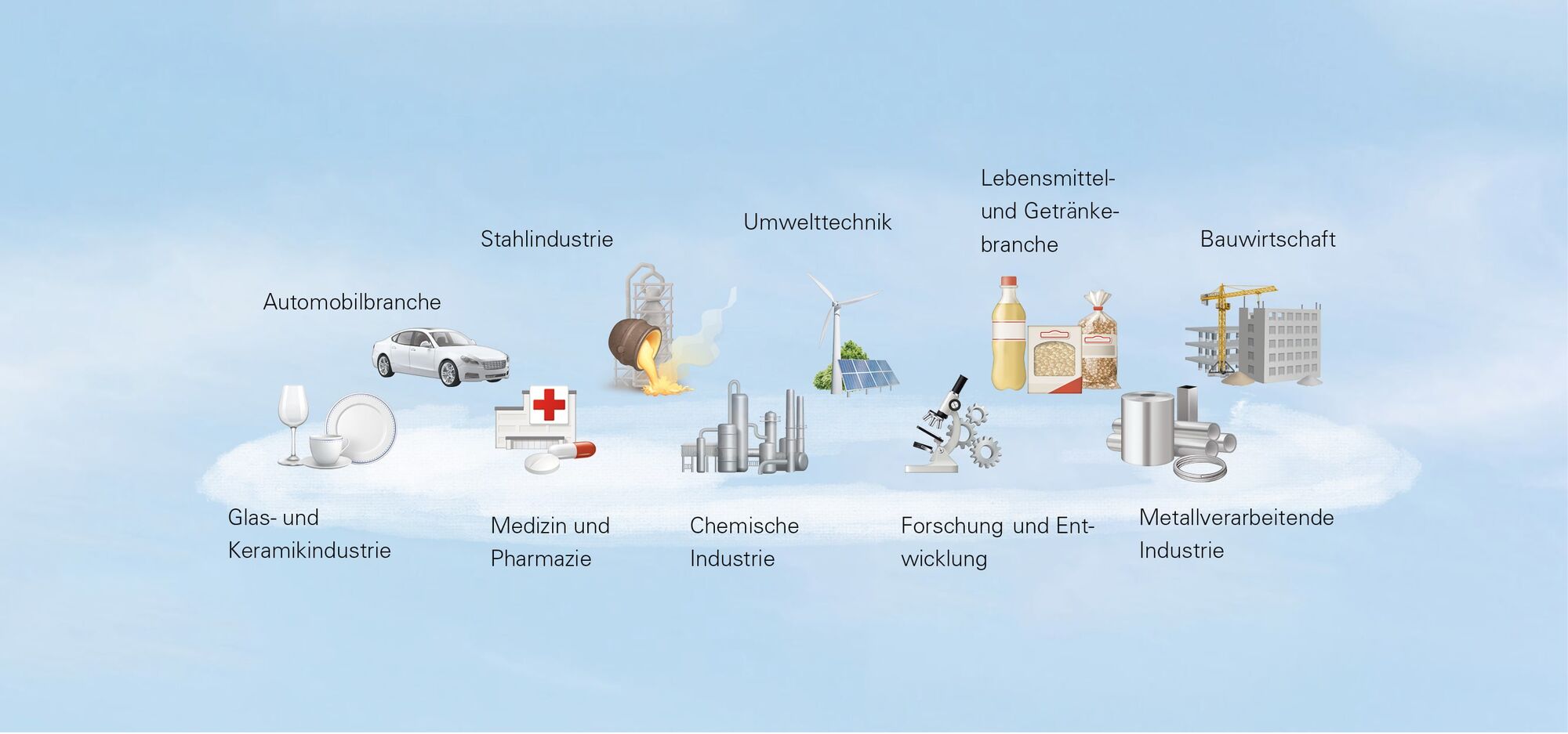 Typische Anwender-Branchen sind z.B. Metallverarbeitende Industrie, Umwelttechnik, Lebensmittel und Getränke, Medizin und Pharmazie, Bau, Metallurgie, Glas und Keramik, Chemische Industrie sowie Forschung und Entwicklung.